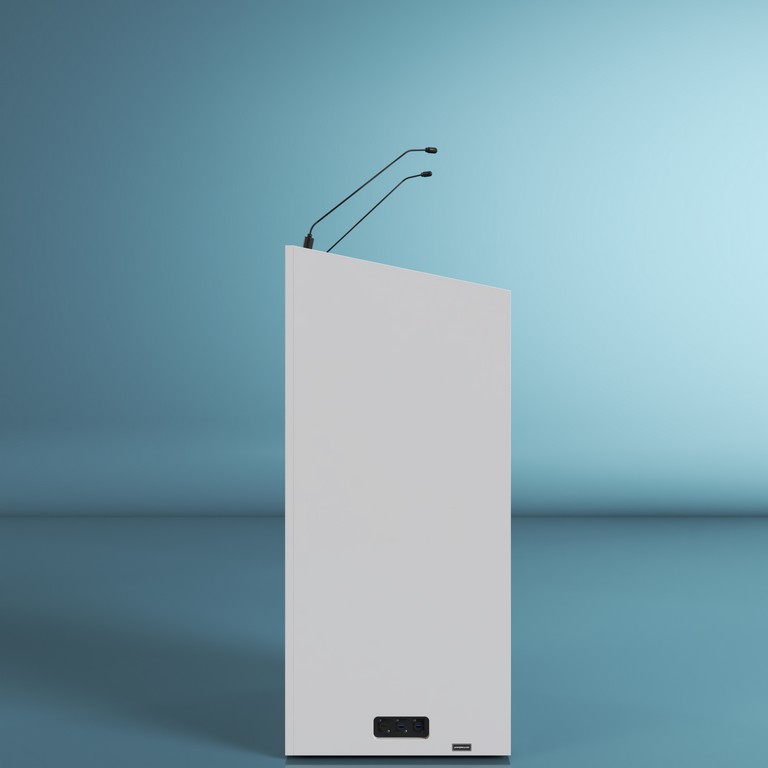 W górnej części mównicy znajduje się monitor dotykowy (22″, IPS, Full HD), który reaguje na dotyk przez szkło i posiada klasę odporności IP65. Hartowane szkło edge-to-edge, szerokie kąty widzenia oraz wysoka precyzja reakcji sprawiają, że idealnie sprawdza się jako interfejs wspomagający pracę prezentera jak i sterujący prezentacją.