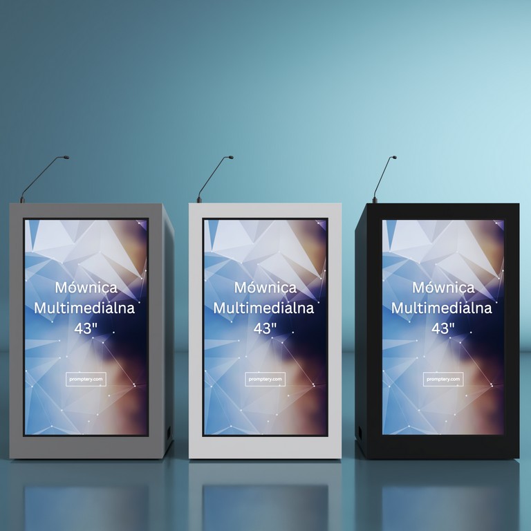 Zamów już dziś nowoczesną mównicę multimedialną z ekranami 43” i 22” – dopasowaną do Twoich realnych potrzeb.