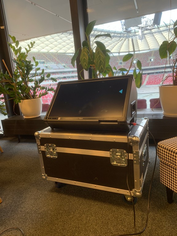 Prompter podłogowy Sufler, którego dotyczy oferta ma rozmiar 32 cale i jest dostępny w wersji bez skrzyni transportowej tzw. case oraz Prompter sceniczny Sufler 32 ze skrzynią transportową.